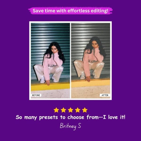 - Fully Tailorable: Customize each preset to match your unique aesthetic and style.